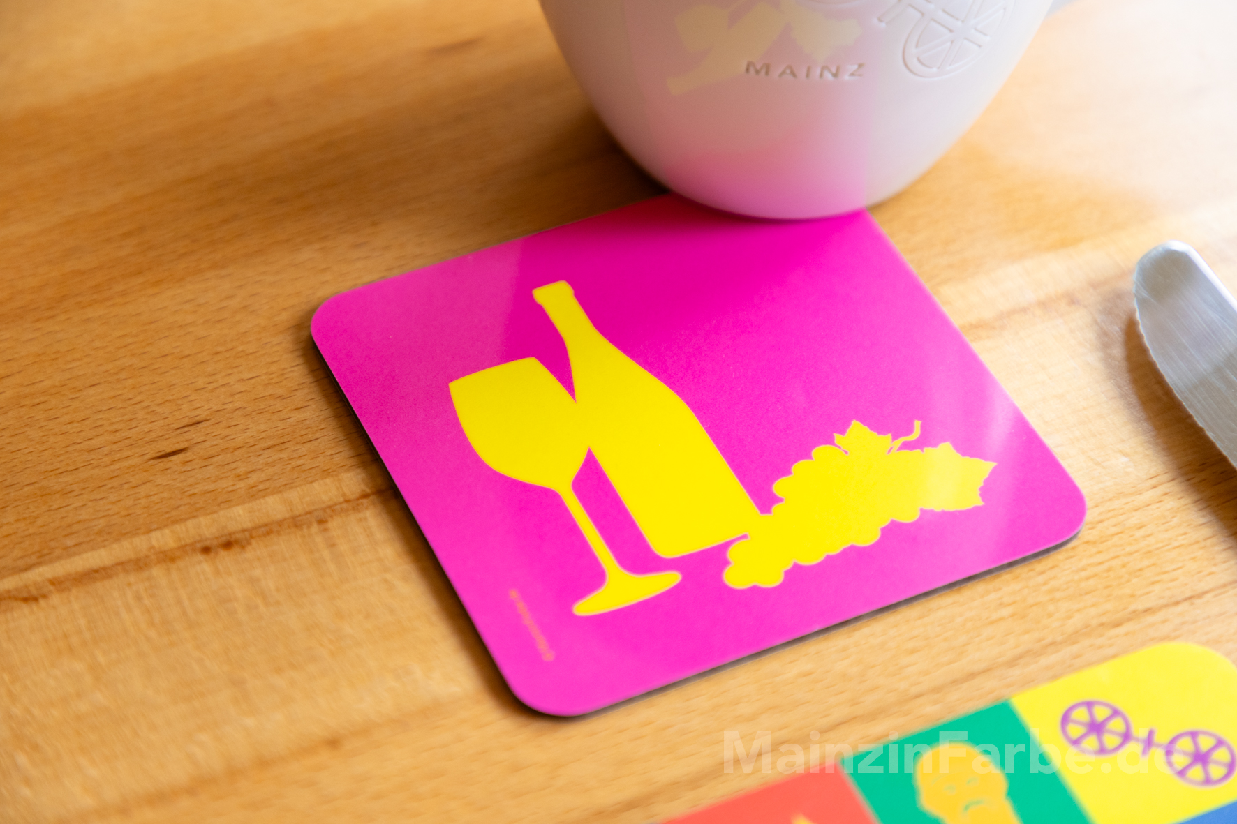 Bunt gedeckt für Glas oder Tasse. Mit diesen Mainzer Ikonen nimmt dein Getränk meenzerisch Platz: Mainzer Dom, Christuskirche, Mainzer Rad, Narrenkappe, Gutenberg und ein „leckerer“ Wein. Nach Lust und Laune kombinierbar!