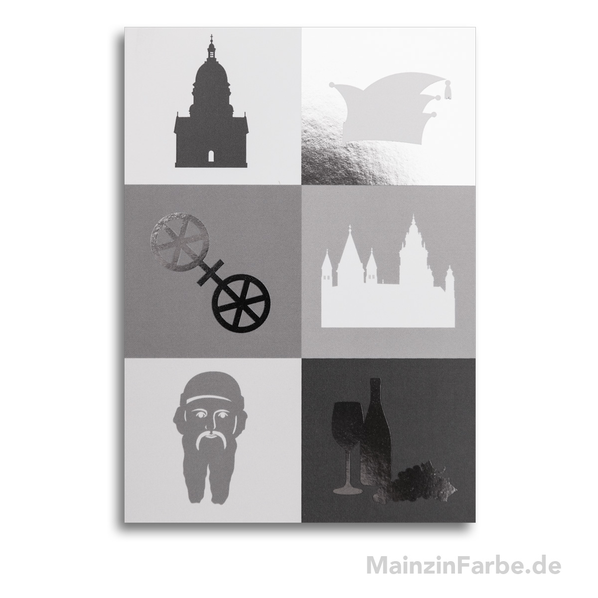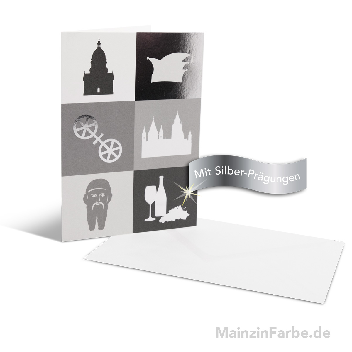 Persönliche Glückwünsche machen sich auf dieser edlen Mainz-Grußkarte mit Silber-Prägung besonders gut. Die passenden Mainz-Geschenke im gleichen Design gibt es natürlich auch.
